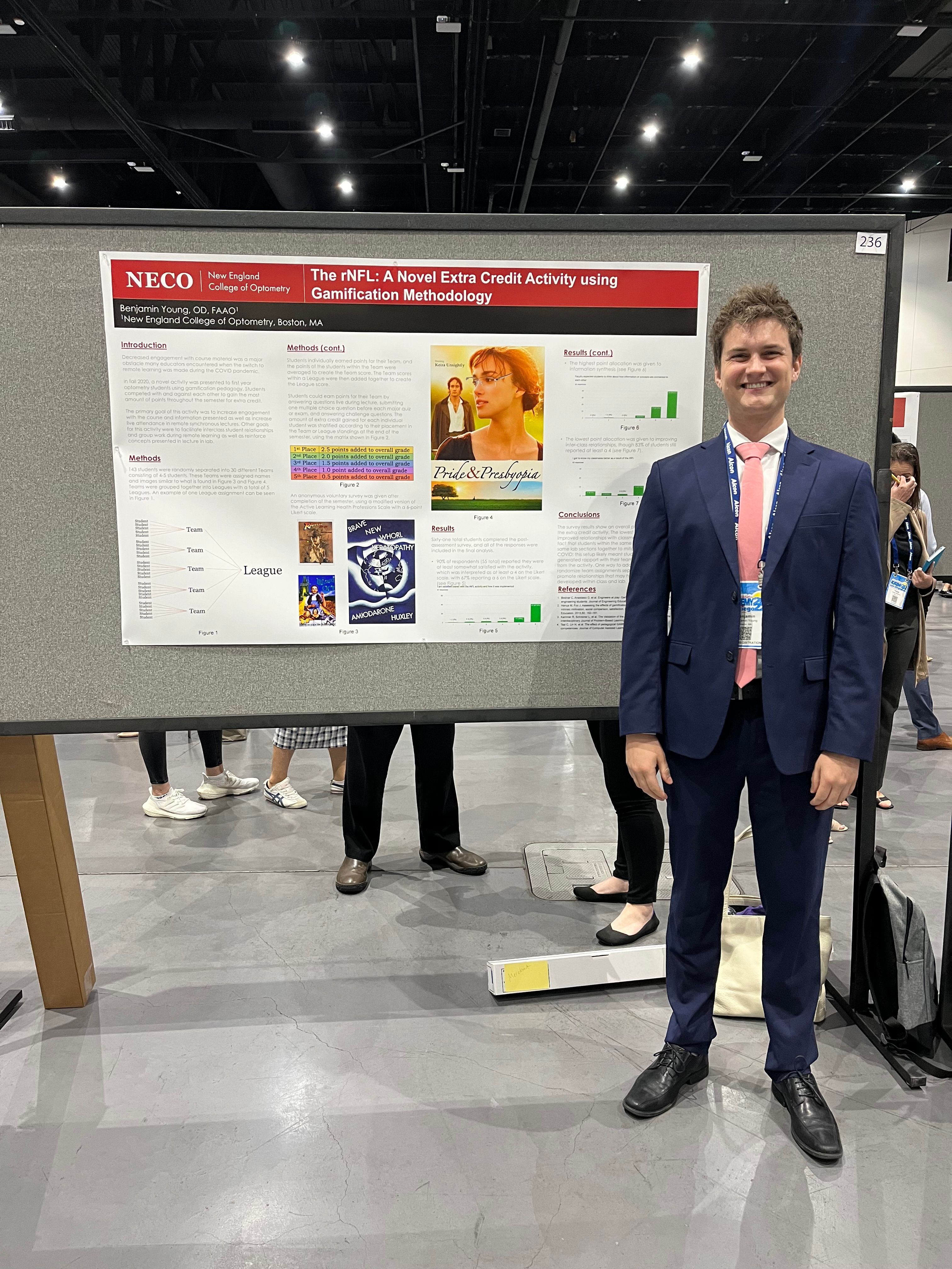 Young presenting a poster on his gamification methodology at the American Academy of Optometry annual meeting in 2022. Image credit: Ben Young, OD, FAAO